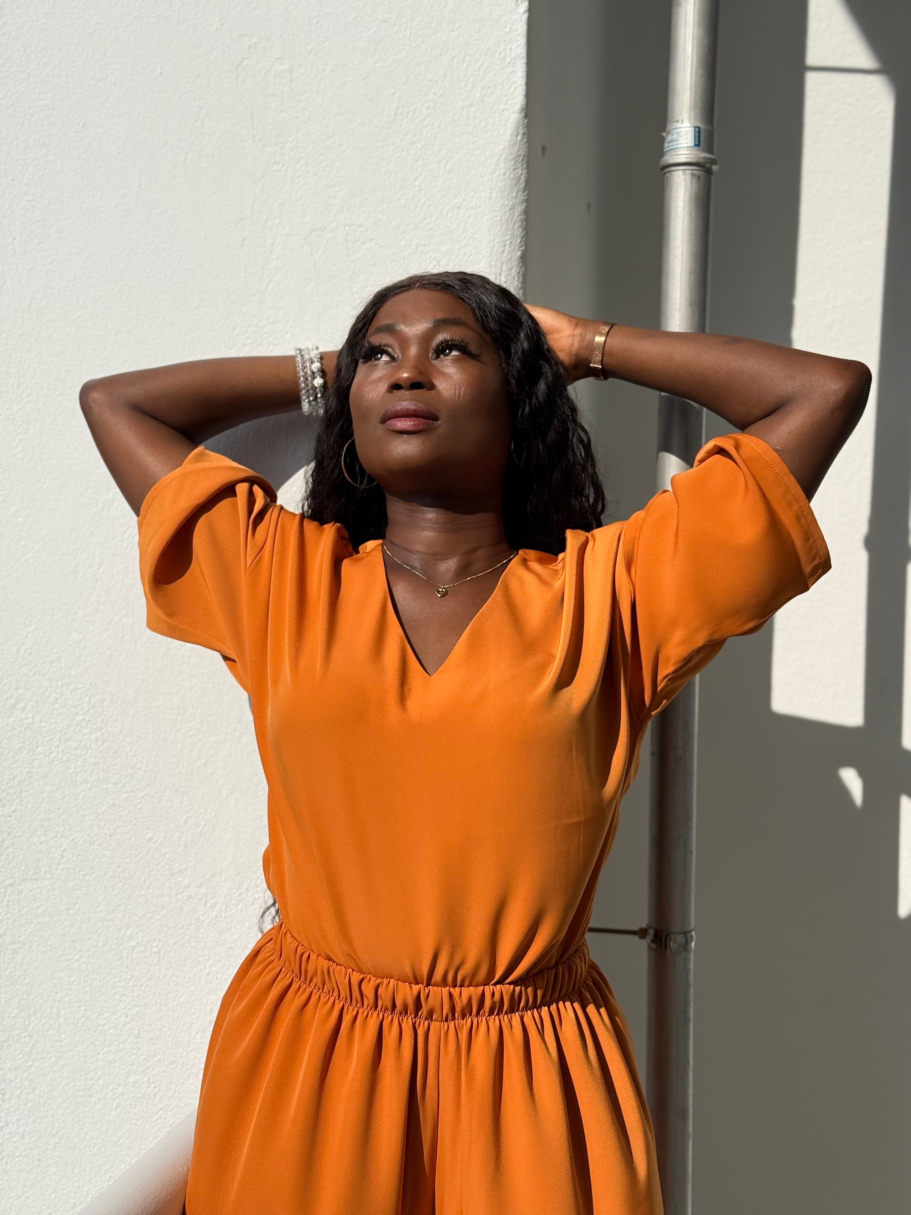 Puseroa voit käyttää kaarevalla ja v-pääntiellä. Voit käyttää sitä erikseen tai yhdistää sen saman sävyisen Sointu housuhameen kanssa ja saat kokonaisen asun.