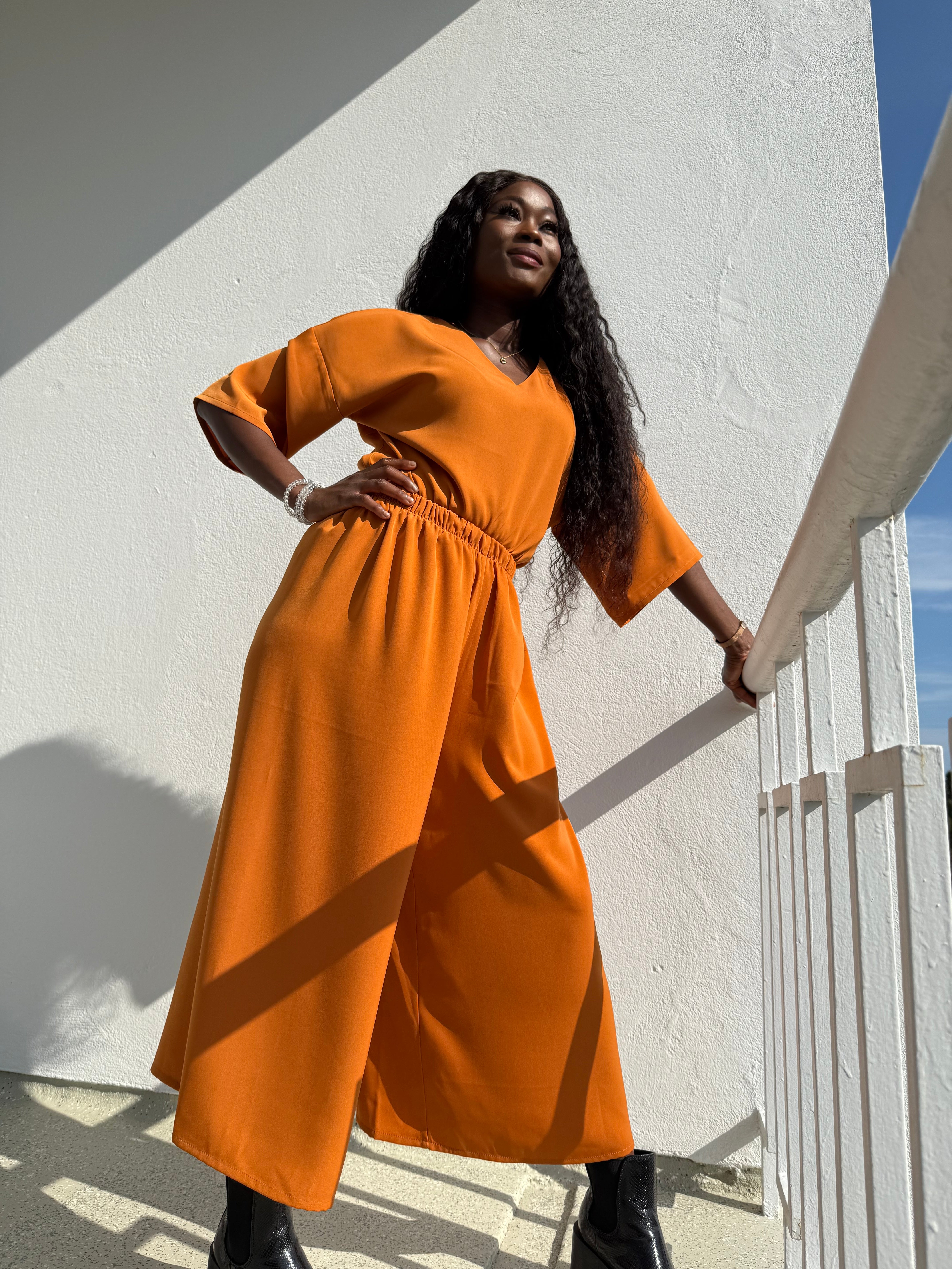 Kangas ei juurikaan rypisty joten pesun ja kuivumisen jälkeen voit huoletta pukea Sointu housuhameen yllesi ilman silitystä. Okran sävyinen materiaali on tunnultaan kuin kupro tai pehmeä viskoosi.